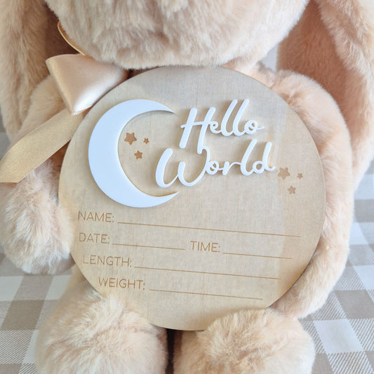 Birth Announcement Plaque | Hello World Circle 14cmRegular price $34.95 AUDRegular priceUnit price / per-