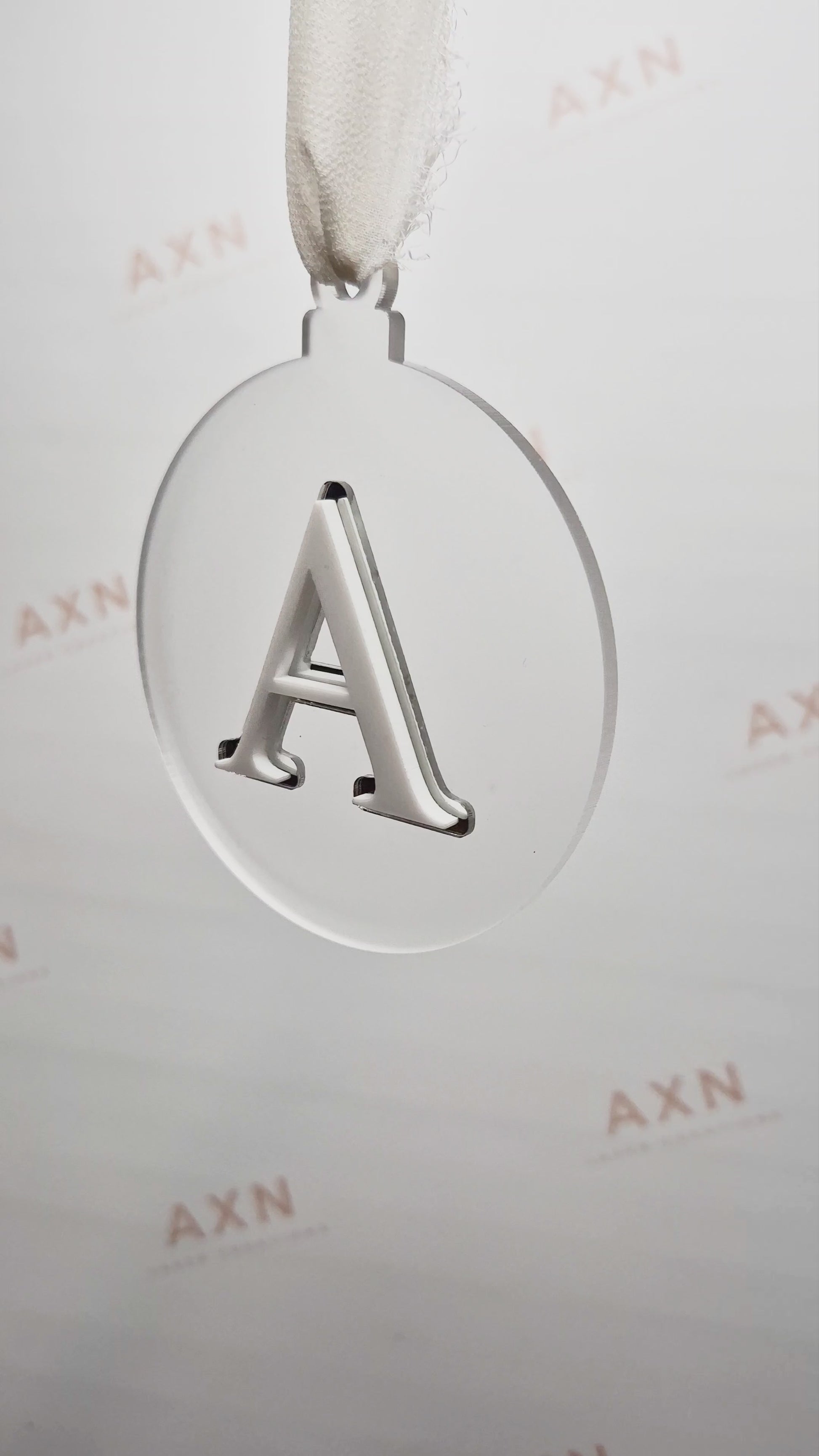 Create a personalised and refined touch to your holiday decorations with our frosted acrylic ornament featuring a letter of your choice. This personalised ornament is crafted from premium materials, creating a chic and sophisticated look that will make a statement on your tree.